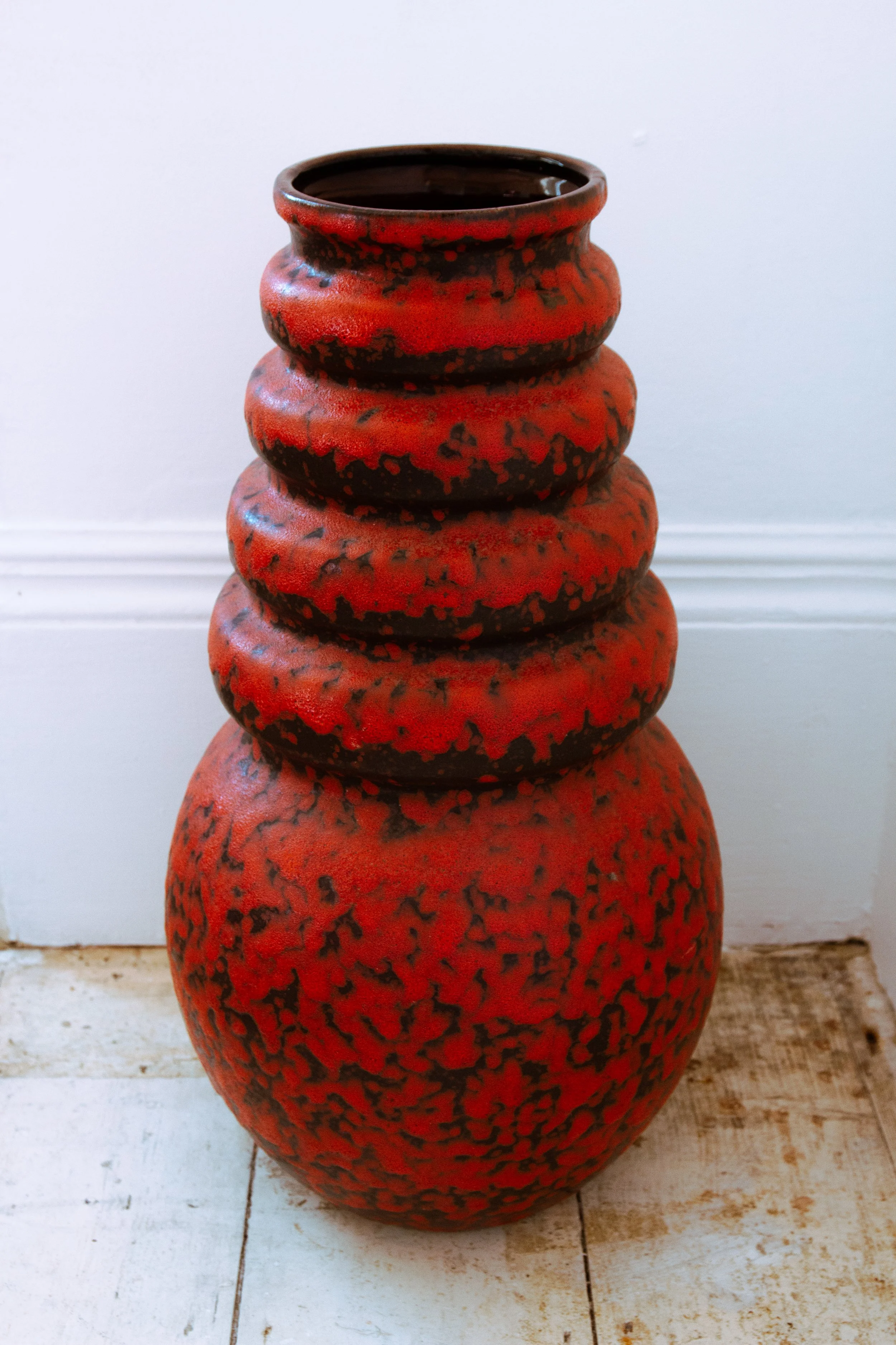 Produced by Scheurich in the 1970’s as part of the Wien/Vienna Series. Featuring the iconic fat lava glaze in red and black.
